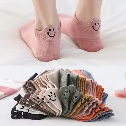 5足組 ホワイト レディース ショートチューブソックス 春秋のかわいい表情 笑顔 レディースソックス 秋に多用途