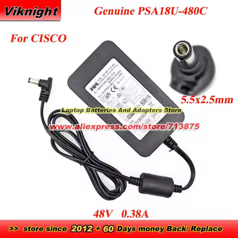 Genuine PSA18U-480C Aironet Power Adapter P/N 34-1977-03 A0 48V 0.38A Power Supply with 5.5x2.5mm tip