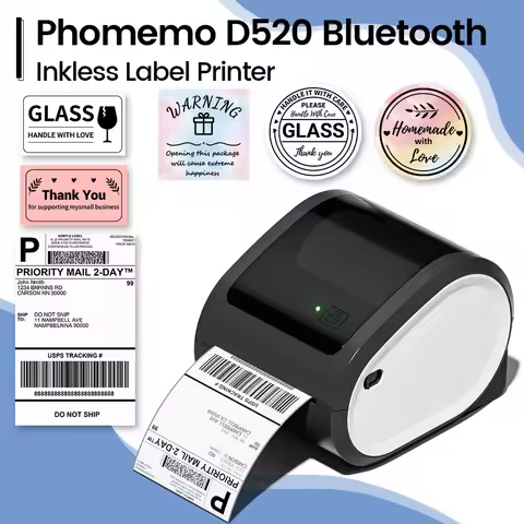 Wireless Bluethooth Shipping Printer Phomemo D520BT Thermal Label Printer for Small Business Package Label Maker for 100x150cm