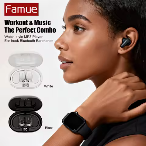 Famue BF08 Orologio sportivo Lettore MP3 con auricolare Bluetooth 5.3 con gancio per l'orecchio - Set di musica per allenamento all'aperto per fitness da corsa combinato