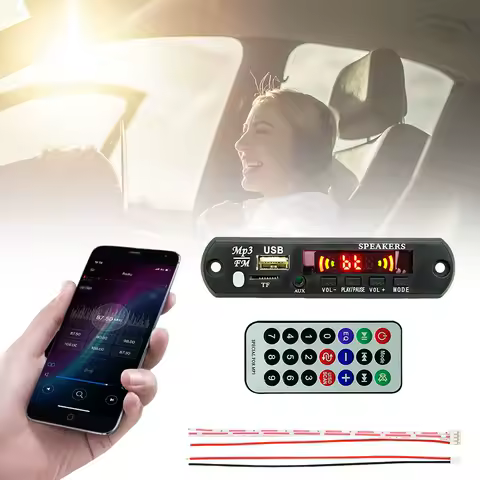 Modulo lettore audio MP3 5/12V USB TF Radio FM Modulo audio 5.0 compatibile con Bluetooth Audio senza perdita con telecomando per auto