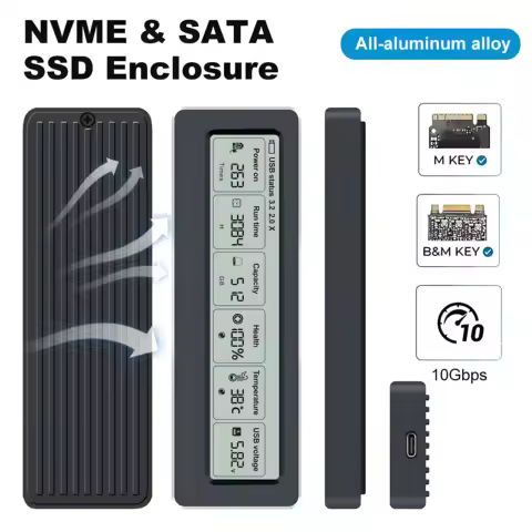 M.2 SSD Case NVMe SATA SSD Enclosure Adapter All-aluminum alloy 10Gbps USB 3.2 Gen2 USB C External Enclosure with Display Screen
