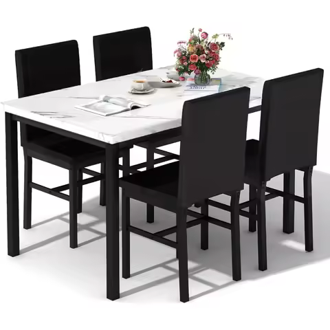 Set da pranzo moderno per 4 persone con tavolo in finto marmo e sedie in pelle per spazi compatti