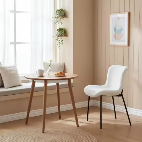 Sedia da pranzo retrò in legno con schienale curvo, comoda sedia da pranzo con sedile in morbida pelle per cucina, sedie da tavolo da caffè semplici e moderne