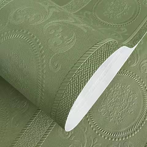 3D Green Embossed Peel and Stick Wallpaper Damask Textured Self Adhesive Wallpaper Modern Floral Contact Paper for Living Room