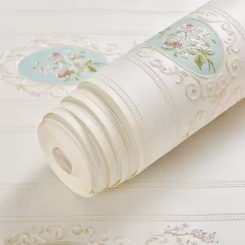 White Floral Wall Paper 3D Modern Fashion Non-woven Flocking Wallpaper Rolls for Bedroom Kids Room Wall Flower Wall Sticker