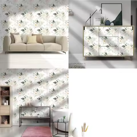 Blue Bird Floral Self-Adhesive Wallpaper Modern Flower PVC Waterproof Wallpapers Peel and Stick Wall Stickers Home Decoration