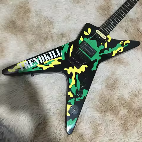 Kafatası Desenli Kamuflaj Çatal Şeklinde 6 Telli Elektro Gitar HH Manyetik Floyd Rose Köprü Müzisyenler İçin Harika Bir Hediye