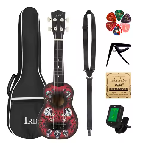 IRIN 21 Inç Ukulele 4 Strings Hawaii Gitar Kafatası Ukulele Guitarra Çanta Dizeleri Seçtikleri Tuner Gitar Parçaları ve Aksesuarları