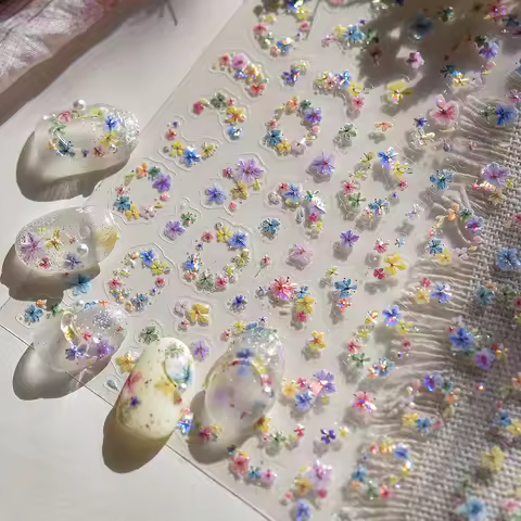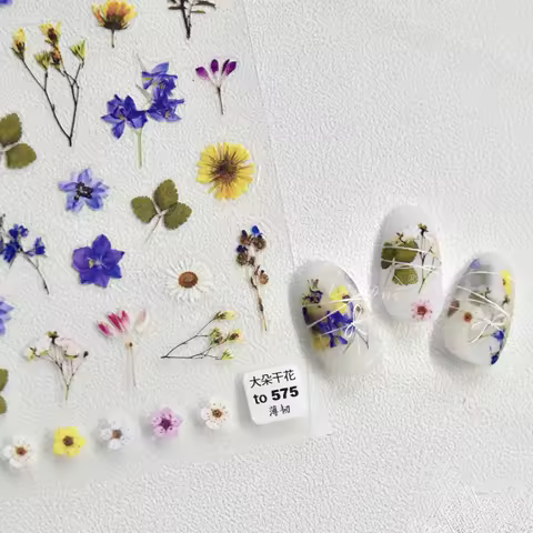 Colored Floral Plant 5D Dried Flower Petal Garland Wreath Nail Art Sticker French Shiny Self Adhesive Decoration Manicure Decal