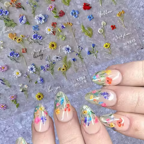 Dried Flower Nail Art**: This selection offers a broader range of floral designs, from dainty daisies to vibrant sunflowers, providing a canvas for more elaborate and colorful nail art.
