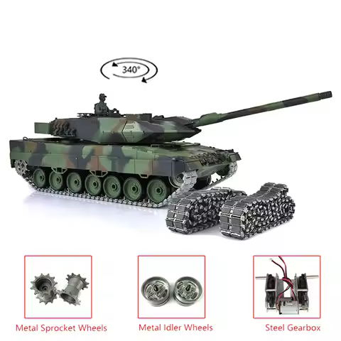 1/16 Henglong 7.0 Leopard 2A6 RC Tank 3889 con barilotto Recoil Tracce metalliche Cuscinetti in gomma Modello di telecomando per collezionisti