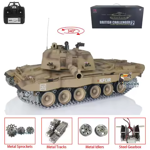 Giocattoli 1/16 Heng Long 7.0 Aggiornato Challenger II RTR RC Serbatoio 3908 Tracce in metallo Motore Fumo BB Unità Acciaio Cambio Tenditore TH17737