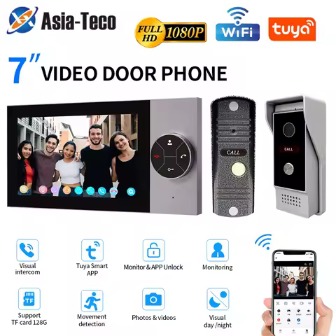 Wifi Wired Smart Home Video Tür Intercom System 7 "Farbe Bildschirm Monitor AHD 1080P Türklingel Tuya App remote Entsperren