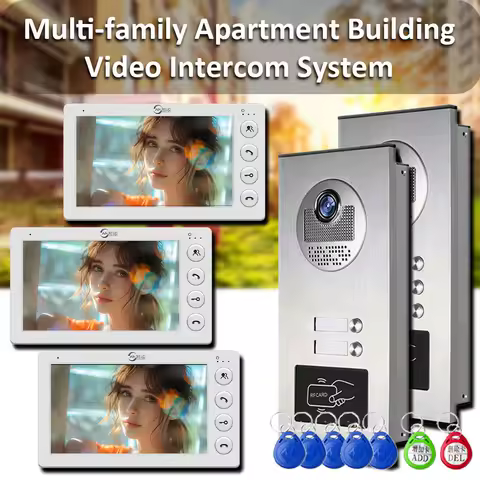 3 Unit Home Video Intercom for Apartments Residential Intercom Doorbell Video Door Phone System with RFID Card Unlock